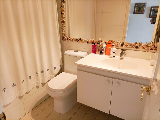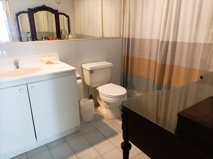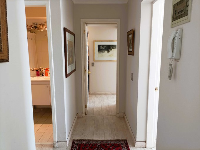 Tiene un cuarto dormitorio con baño, fuera y frente a la entrada del departamento, que puede ser usado como dormitorio de servicio, un cuarto dormitorio independiente con baño para visitas, o bien como escritorio o bodega.