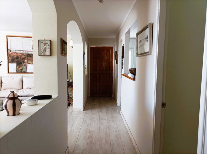 Departamento con 3 dormitorios amplios, dormitorio principal en suite y con walking closet, segundo dormitorio con espacio para 2 camas de una plaza y media, tercer dormitorio en suite y amplio closet; 3 baños completos, cocina americana amoblada, living comedor con salida a espectacular terraza de 55 metros cuadrados aproximados con vista al mar.