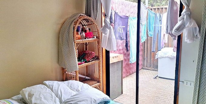 Cada cabaña con 2 habitaciones.