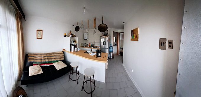 Living con cocina integrada.