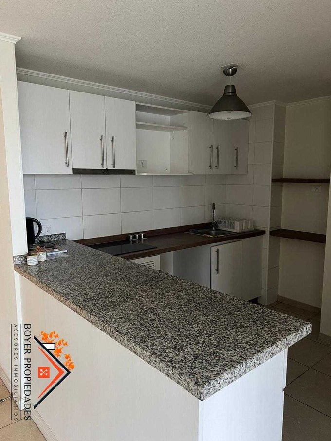 - Cocina amoblada, compuesta por encimera eléctrica de inducción, horno eléctrico y campana.