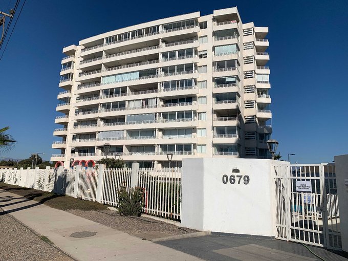 Está ubicado en sexto piso en Condominio Avenida del Mar, frente a la playa, cercano a restarurantes, cafeterías y locales comerciales.
