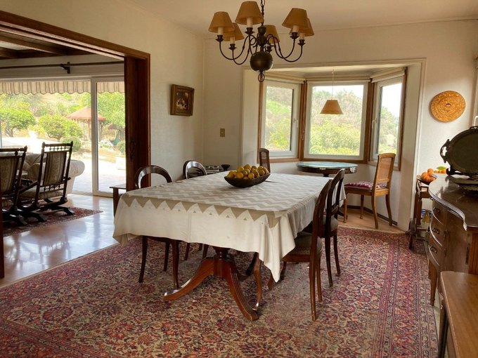 La casa principal de 267mts2 en desniveles construcción de hormigón, loza y albañearía de ladrillo, hermoso hall de entrada con una estufa a leña para calefacción que da acceso a 3 puntos de la casa (cocina, living comedor y habitaciones)cuenta con
