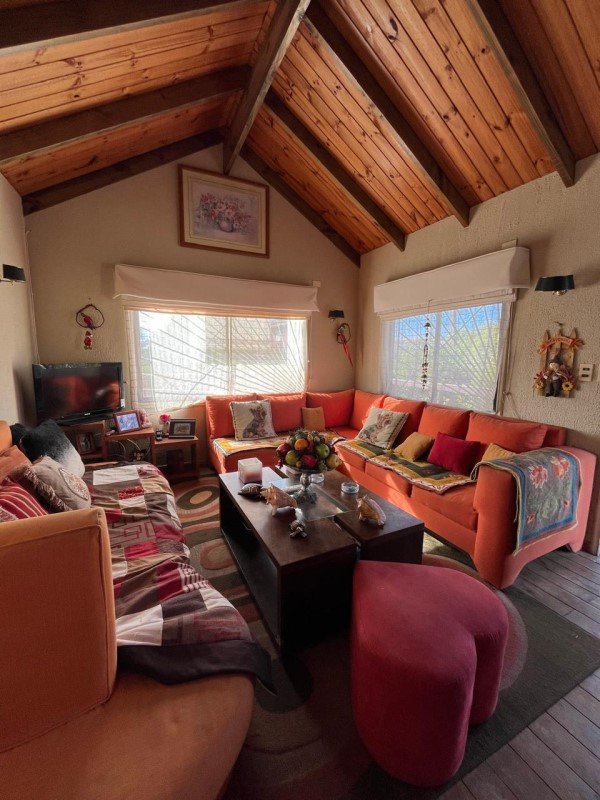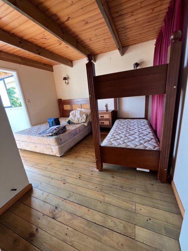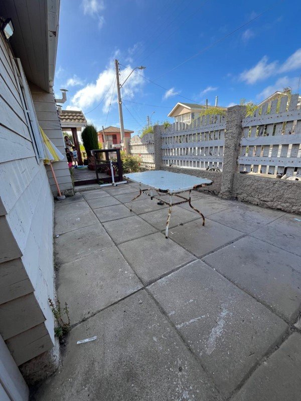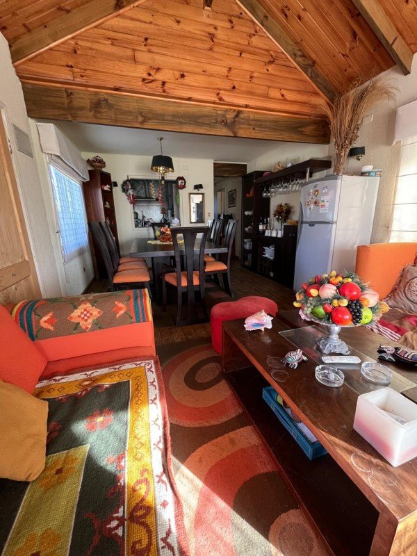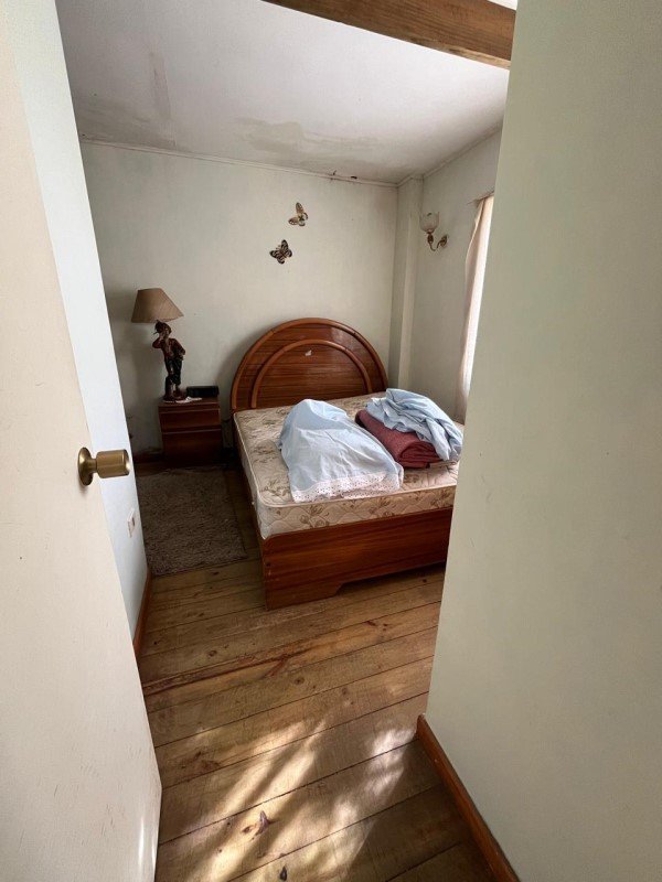 Casa en albañilería, interior madera, terraza abierta en madera, un estacionamiento, patio interior con lavadero, piso cerámico.