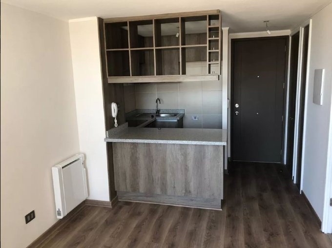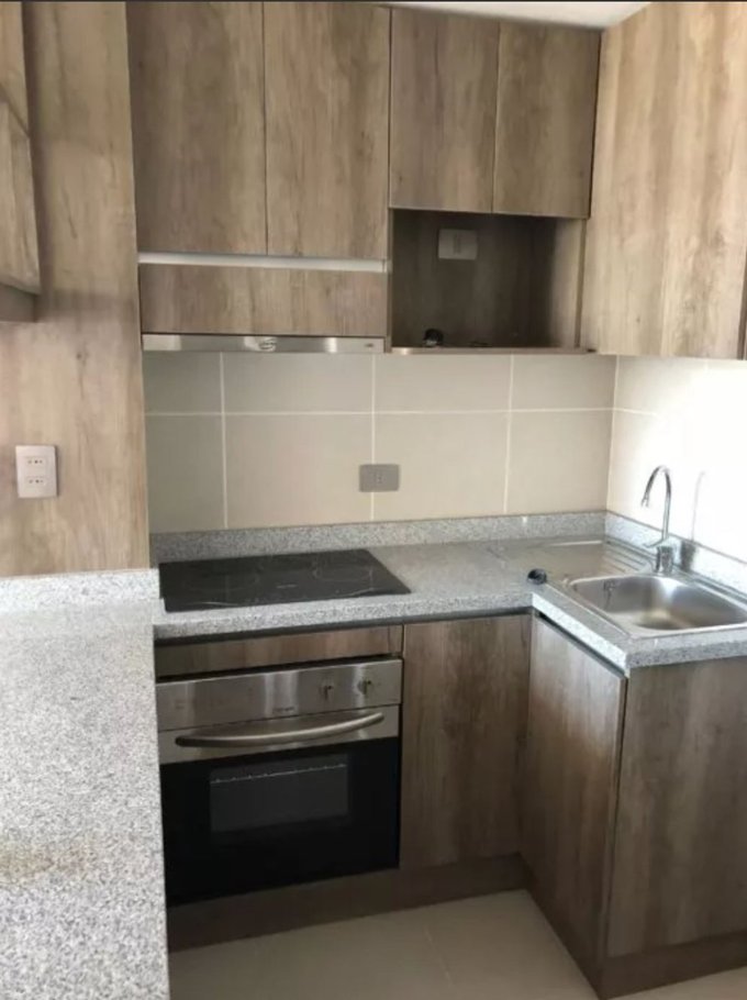Piso 9 Departamento de 1 dormitorio independiente, con cocina integrada a la sala del living. La cocina completamente amoblada, con mesada de granito. Piso flotante en todo el departamento y cerámica en pareas húmedas.