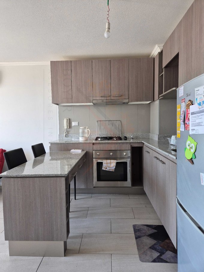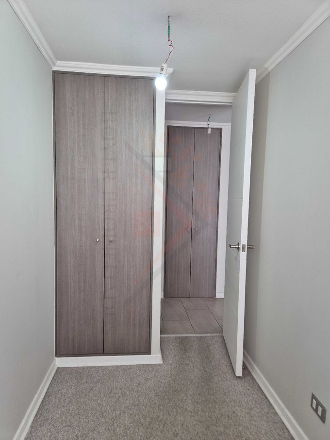 -Dormitorio principal con capacidad para cama 2 plazas, veladores y cómoda. Clóset con puerta corredera.