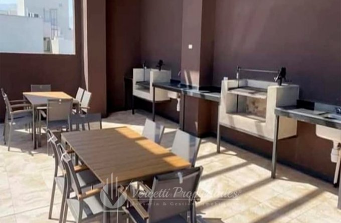 Amplio departamento de 2 dormitorios y un baño, Cocina americana amoblada y equipada con horno y campana eléctrica. Living comedor con salida a terraza.