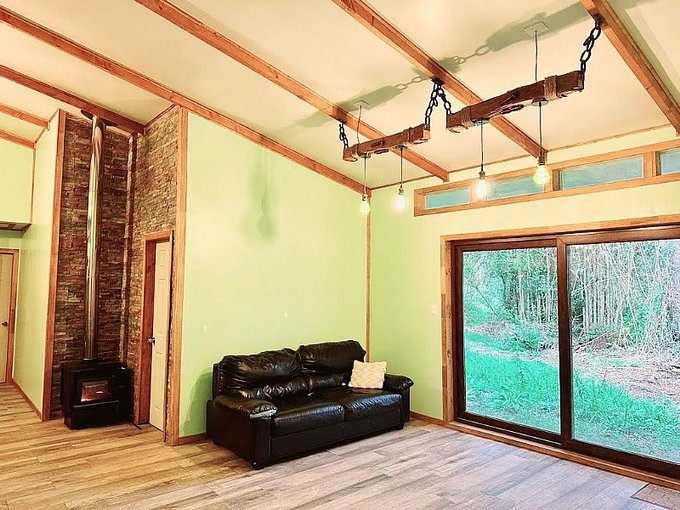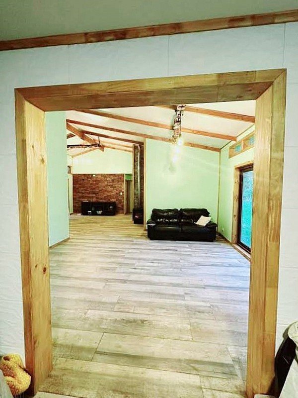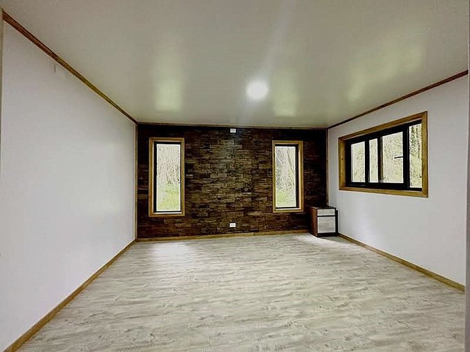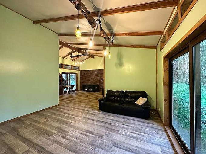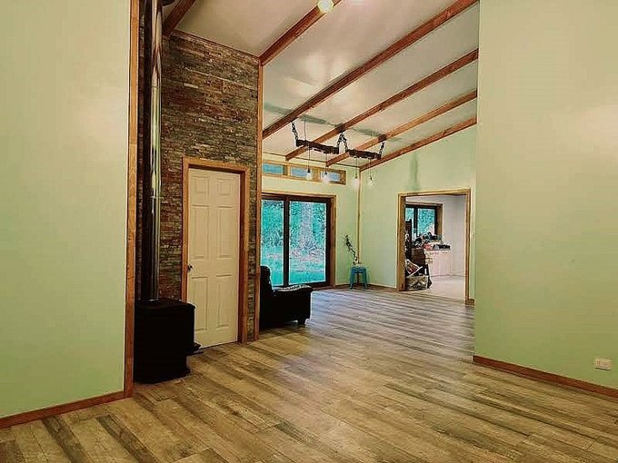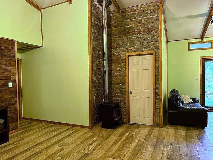 La casa está edificada sobre radier y tiene una terraza en todo el frontis. Todas las ventanas son de termopanel el piso es flotante con cerámicas en baño y cocina y tiene dos calefacciones a leña funcionando en living y cocina. Cuenta con cierre perimetral, closet, barras para cortinas, cocina a gas.