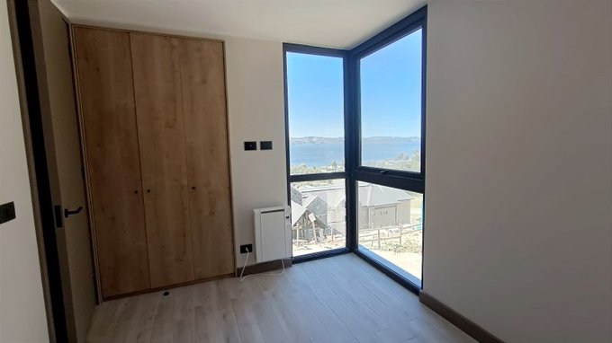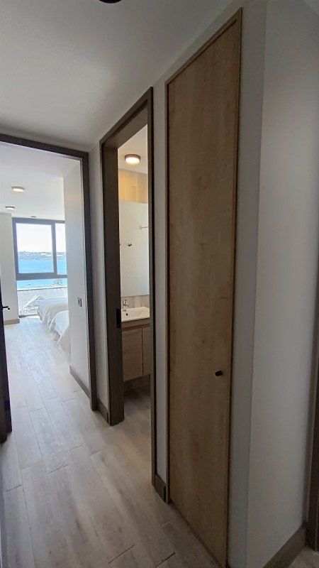 Hacia la izquierda se ubica el pasillo para habitaciones secundarias, ambas con vista al lago, y un baño completo que comparten.