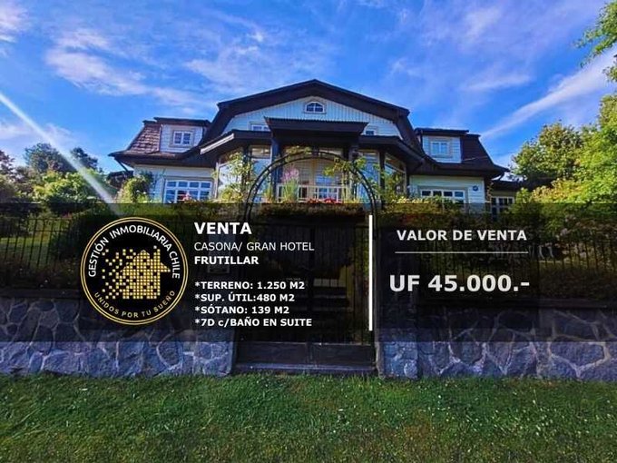 En venta en frutillar, una casona/hotel con 7 dormitorios y baños, ideal para inversión. Con 480m de construcción y 1250m de terreno, esta propiedad ofrece espacio y comodidad. Su ubicación en frutillar garantiza un entorno tranquilo y seguro, perfecto para vivir o emprender.
