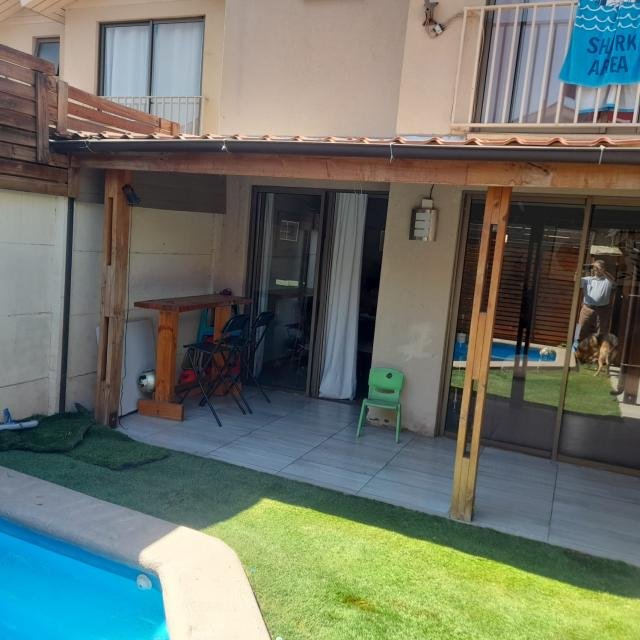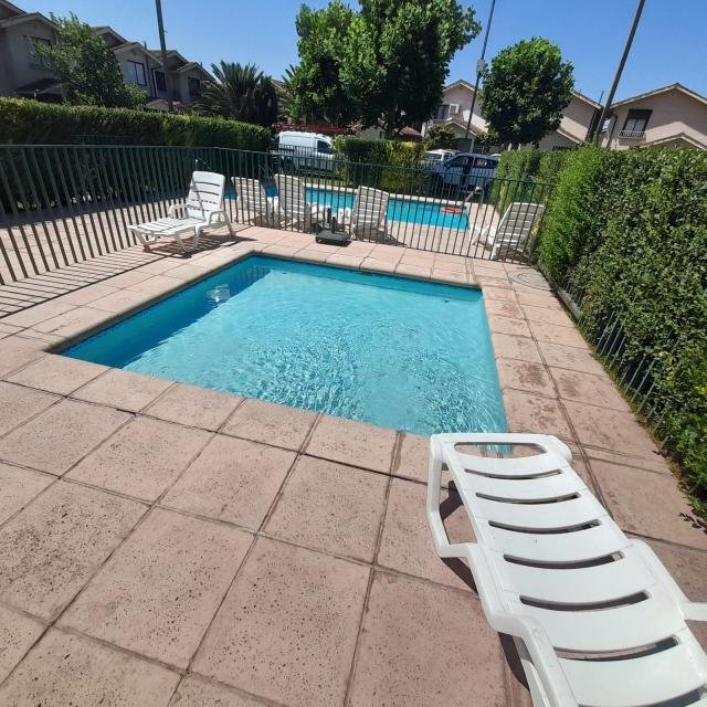 Procasa Propiedades (Código Procasa 67252) Vende maravillosa y funcional, casa de 2 pisos en condominio cerrado de Huechuraba muy tranquilo y seguro, ideal para familias con niños, casa iluminada, terreno de 136 M2 y construidos 88 M2, su orientación es sur y sus gastos comunes son $ 50,000 aproximadamente, sus contribuciones son $120.000 cada cuota, los ventanales y ventanas son de aluminio. Primer Piso : 2 estacionamientos,Hall de entrada con piso de cerámica, cocina separada con piso de cerámica, loggia con conexión para lavadora , living-comedor con piso flotante y salida a patio de 43 M2 con terraza de 24 M2,piscina temperada, jardín con pasto sintético,bodega,baño de visitas, cocina separada con piso de cerámica y muebles Segundo Piso: 3 dormitorios (Principal en Suite y Walk in Closet, 1 baño completo) 2 dormitorios con closet,(Los dormitorios con piso flotante y vinílicos) 1 baño completo. El condominio cuenta con acceso controlado 24/7, acceso con barrera, CCTV, cierre perimetral electrificado, club house, piscina para adultos y niños, jardines A una cuadra pasa locomoción que va al metro Los Libertadores (Línea 6) y al metro Vespucio Norte (Línea 2) también existe una locomoción que va a la ciudad empresarial de Huechuraba. Condominio cercano al Mall Plaza Norte (A pie son 15 minutos), cercano a 2 Strip center, colegios, jardines infantiles, supermercados, farmacias, bancos, centros de salud, home center, ferreterías (Imperial), restaurantes, cafeterías y comercio en general. No deje pasar ésta oportunidad y coordina una visita. Código Interno Procasa 67252