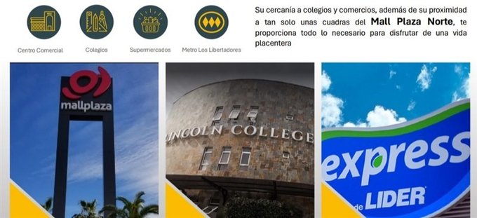 Ubicado estratégicamente en los Libertadores, conectando Mall plaza norte en minutos, colegios y supermercados!