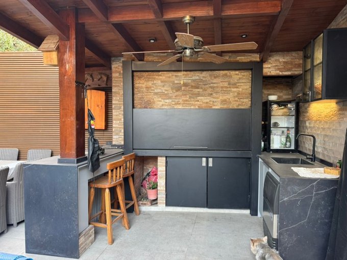 Moderno quincho con puertas abatibles para mantener un cuidado permanente y ordenado.