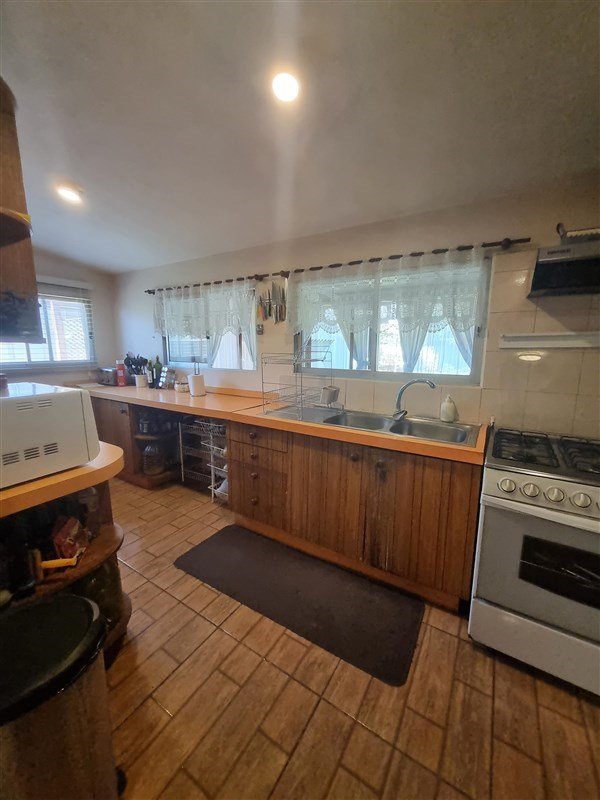 Cocina separda con campana y muebles de almacenaje. Comedor de diario.