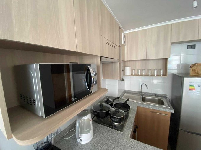 Living-comedor se integra de manera armoniosa con la cocina, ofreciendo un espacio moderno y practico. cuenta con ventanas de termo panel lo que proporciona un optimo aislamiento térmico y acústico mejorando la eficiencia energética del hogar, con piso flotante, con salida a balcón privado, cocina americana amoblada, cuenta con encimera y horno empotrado. El detalle de su terraza privada es el complemento ideal para disfrutar de momentos de relax y contemplación.