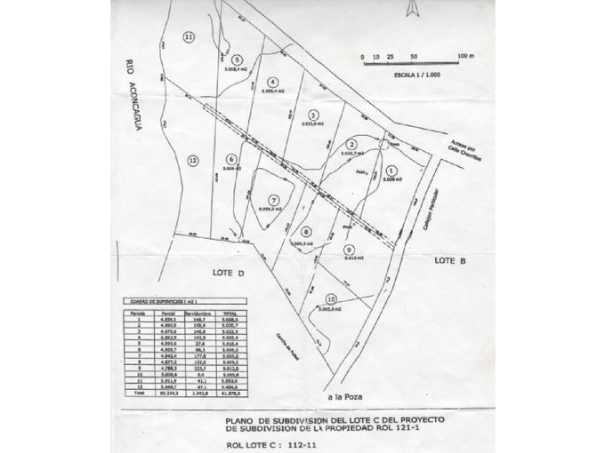 Los 35.000 m2. se componen de 8 parcelas con sus roles individuales, y están rodeados por pandereta de cierro vibrado tipo bulldog., y se componen de ocho terrenos, cada uno con rol propio (nums.5,6,7,8,9,10,11 y 12 del plano de división). Dos de éstos (5 y 11) sufrieron una reducción por expropiación vial de unos metros, para ensanchar el camino y el puente. Existen 2.000 m2. plantados con paltos Hass en producción, la cual es en promedio 35.000 a 40.000 kg./año (aprox. 50 a 60 M$/año de ganancia neta). Los 1.690 paltos cuentan con riego tecnificado por goteo programado, mediante un sistema de programación y control electrónico. En el resto del predio se ubican 3 casas, dos pareadas de 45 m2. cada una y una de 65 m2., de material liviano. Existen además otros árboles frutales, para consumo casero. Dentro del terreno también se cuenta con una pesebrera en muy buen estado, para caballos y una medialuna.