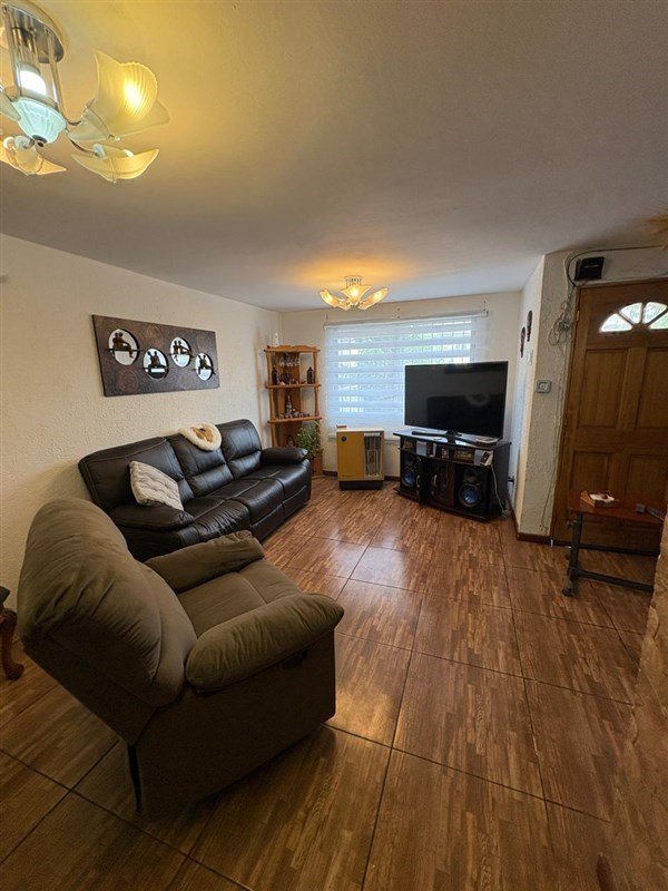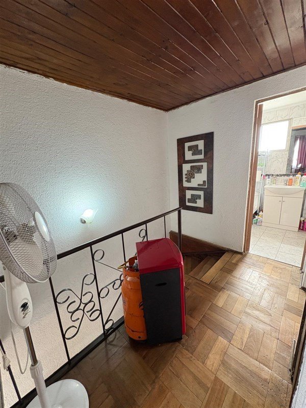 Hall de entrada, escalera, livng y comedor, cocina con salida al patio, sala de estar o dormitorio, patio trasero amplio, lavadero y bodega.