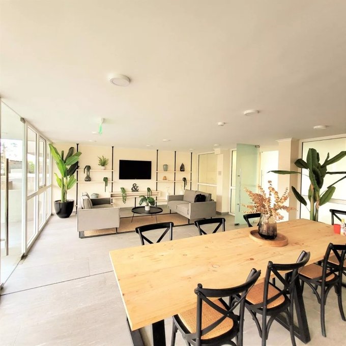 El departamento cuenta con dos dormitorios privados y dos baños, ideal para familias o parejas que buscan comodidad. La orientación Sur-Poniente asegura buena luminosidad durante el día. Los gastos comunes son aproximadamente $100,000 pesos.