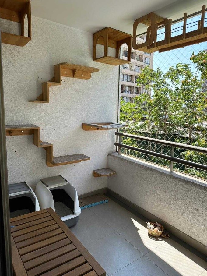 -Gatificación (juegos adaptado para gatos) en balcón y ventanal (se pueden sacar).
