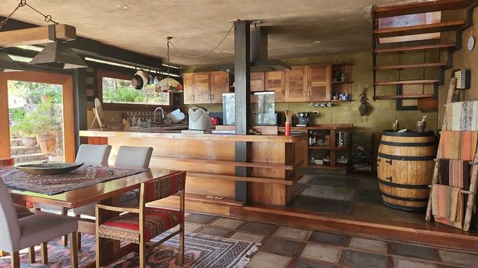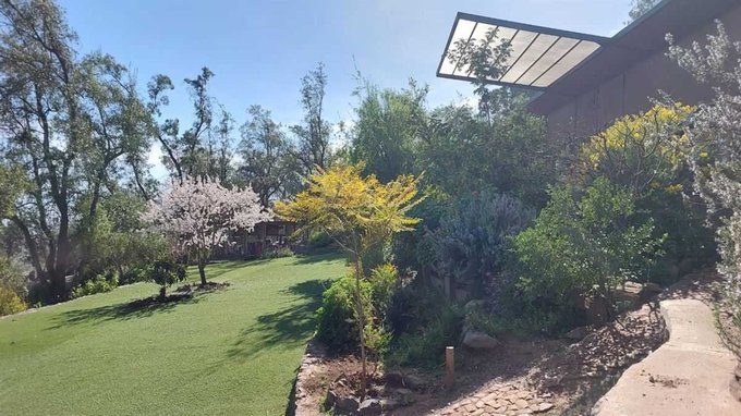 En el mismo terreno, existe además una casa de cuidador con 3 dormitorios, baño, cocina y sala de estar y bodega, realizada íntegramente en madera. Y un taller oficina con chimenea de doble combustión, piso de porcelanato imitación madera, ventanales con vista a la cordillera y al jardín y terraza con deck a un costado.