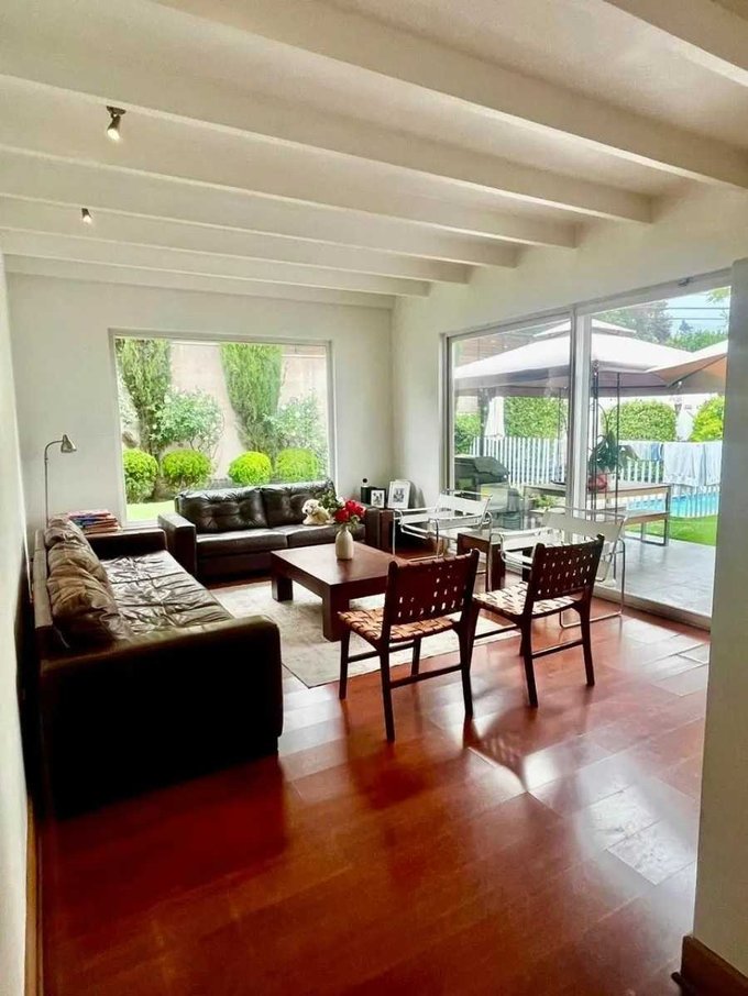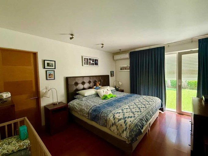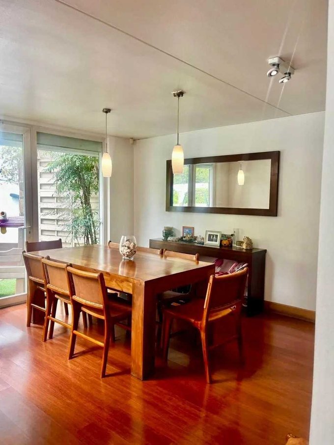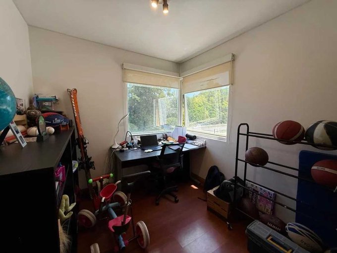Moderna y hermosa casa mediterránea en condominio controlado 24/7 en La Reina Alta. Rico y tranquilo sector. Colegios cercanos. 4 piezas más escritorio, sala estar y servicios. Piscina. Estacionamientos. Hay que verla llegar y habitar.
