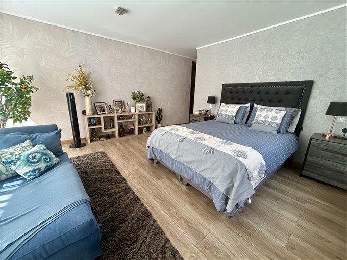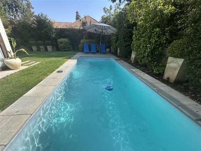 3 dormitorios, 3 baños, pieza y baño servicio, quincho, 4 estacionamientos tipo Tándem, bodega y piscina
