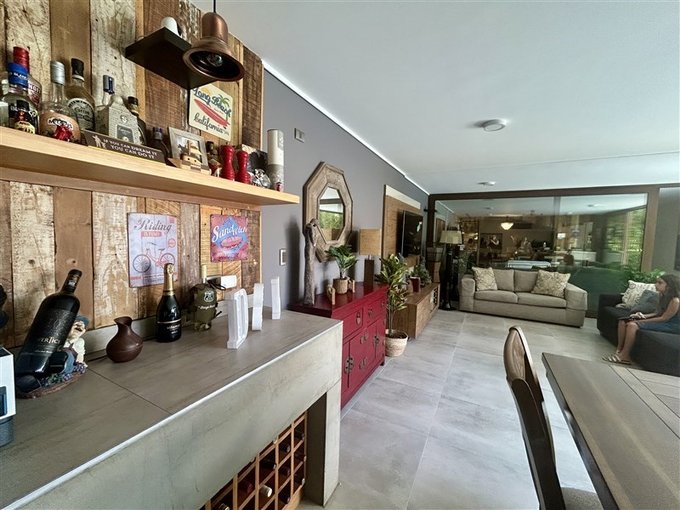 El departamento dispone de 3 dormitorios, siendo el principal en suite; 3 baños, además de dormitorio y baño de servicio. Los espacios comunes cuentan con un amplio living y comedor integrados, con salida directa a un quincho totalmente equipado, que incorpora una cómoda sala de estar y conecta con un patio privado con piscina de uso exclusivo.