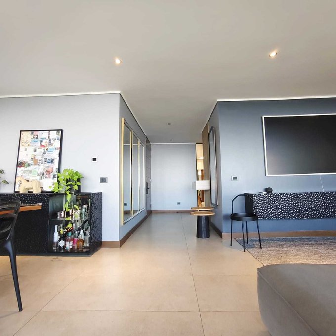 Hall de entrada con hermoso living comedor de excelente tamaño donde puedes acceder a una terraza de 50 Mtr2 cerrada con vista espectacular a Santiago.