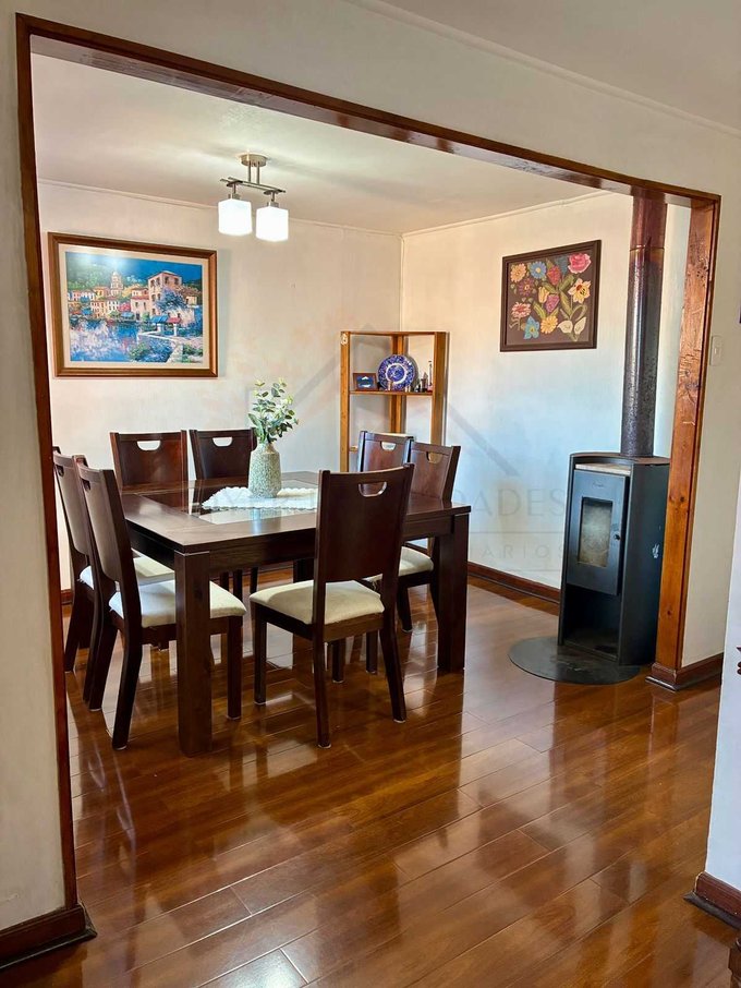 - Un comedor con estufa a leña