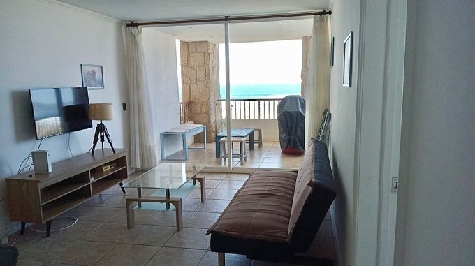 Venta o arriendo de precioso departamento totalmente amoblado con inmejorable vista al mar, dos dormitorios y dos baños uno en suite, living comedor, cocina tradicional con horno, encimera, campana, Loggia, gran terraza con entrada a Living comedor y dormitorio principal.