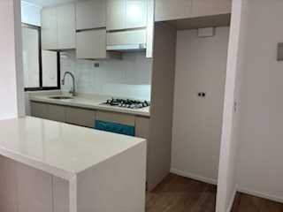 Cocina amobalda y equipada con cocina, horno y campana, todo nuevo. Cubierta de Cuarzo.