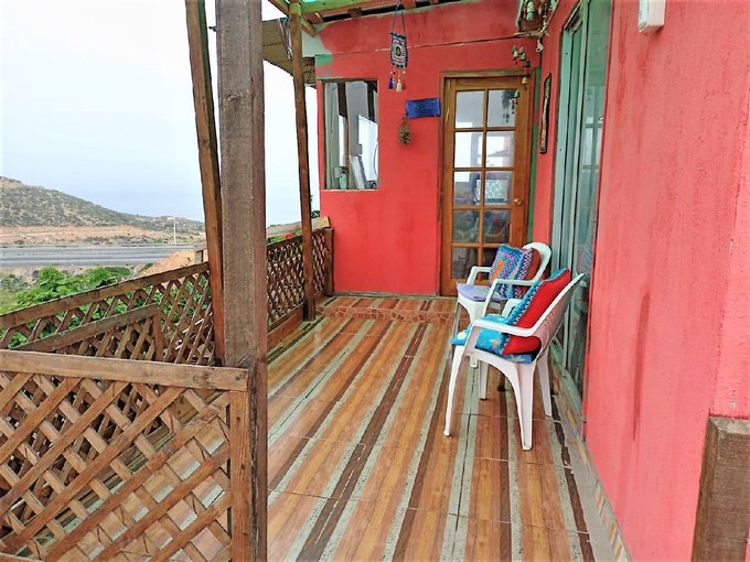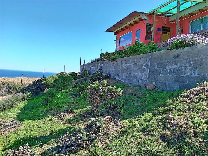 El terreno de 5.000 m presenta una pendiente suave y se encuentra muy cerca del mar, brindando un ambiente natural y sereno. En esta propiedad, encontrarás dos casas de construcción liviana. La casa principal, situada en la cima de la colina, tiene 60 m y cuenta con: