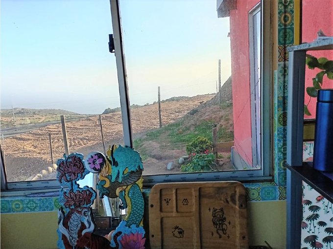 En el exterior, la propiedad dispone de un invernadero de 20 m, ideal para cultivar tus propias hortalizas. El agua potable se suministra mediante camiones aljibe, que llenan estanques de 1.200 y 1.000 litros para las casas y el invernadero, respectivamente. Además, existe la posibilidad de construir un pozo.