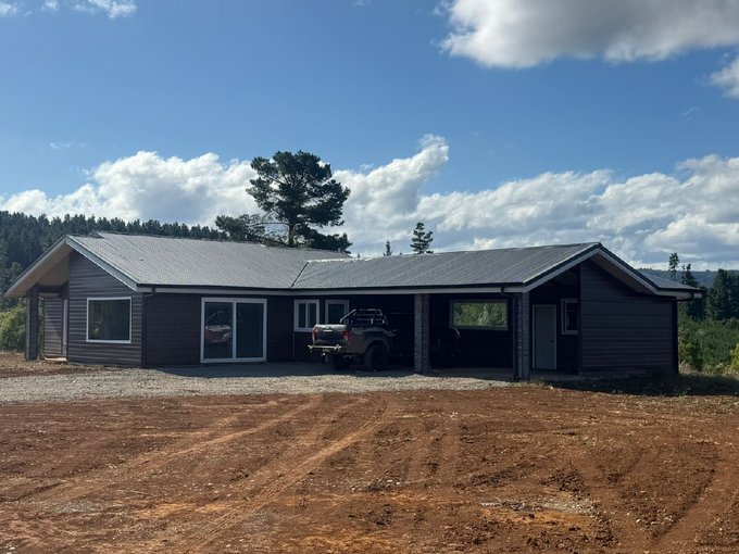 Parcela de 5.000 mts2 y la casa consta de 3 dormitorios (principal con walking closet), 2 baños (principal en suite), lavadero, amplia bodega, estacionamiento techado para tres vehículos, espacioso living comedor, cocina con piso vinílico, logia, ventanales de termopanel, revestimientos de zinc de excelente calidad en toda la casa, puertas de acceso de primera calidad, pozo de agua propio funcionando, también cuenta con electricidad, la casa está para ocupar inmediatamente y es nueva, lista para estrenar.