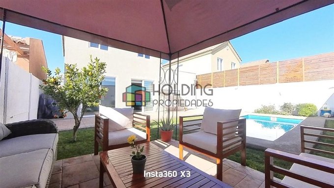 Lindo patio con cómoda piscina familiar, ducha exterior y zona lista para instalar un quincho (radier, luz y agua). Luminarias exteriores. Además dispones de 2 cómodos estacionamientos. Los gastos comunes del condominio son bajos, aproximadamente $80,000 pesos pero permiten la tranquilidad de vivir con seguridad todos los días y un bello entorno rodeado de árboles, plazas de juegos, estacionamientos de visitas y la tranquilidad que sólo Chicauma te puede entregar. Chicauma se ubica al sur de Lampa es una comuna tranquila y familiar, con hermosos paisajes y excelente conectividad a Santiago a través de autopistas. A sólo 5 minutos de Clinica Las Condes - Chicureo; Colegio Pumahue a 5 minutos en bicicleta y a 20 minutos de Vitacura/Las Condes por Autopista Nort-oriente. Existe bus de acercamiento todo el día hasta Metro Vespucio Norte (ida y vuelta). Gran oportunidad precio incluye gran descuento del 10%, enamórate de esta hermosa propiedad Haz de esta bella casa tu nuevo hogar