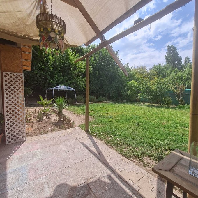 Posee jardín con pasto y gran variedad de arboles frutales como; almendros, olivo, limones, damasco. membrillos, higuera, entre otros.