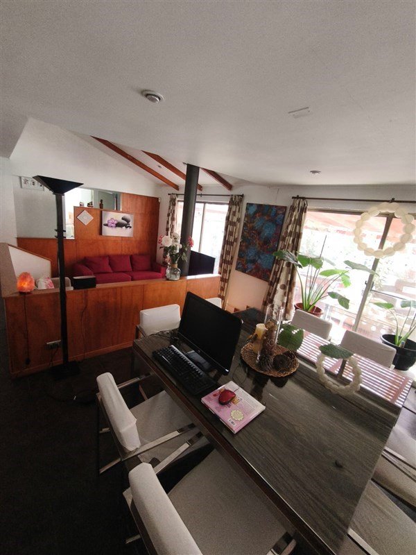 Amplia terraza techada con quincho incorporado