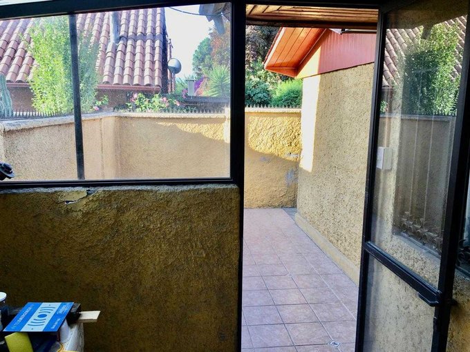 Pequeño jardín trasero con pasada a la zona de la loggia/cocina.