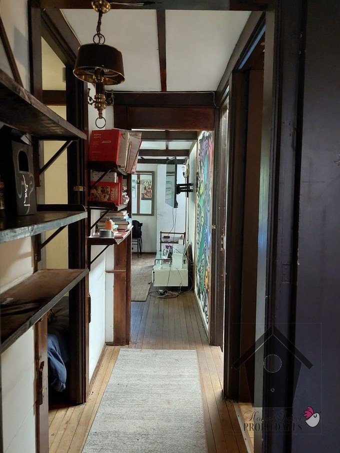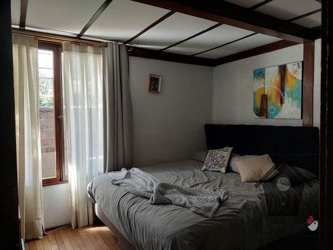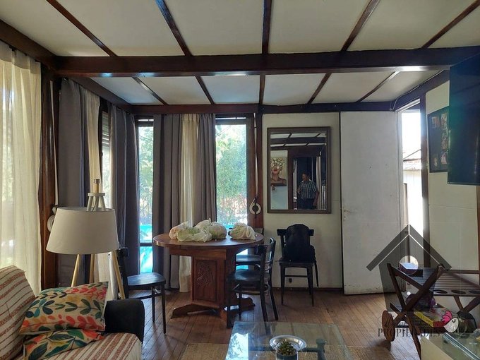 Casa prefabricada Elton, año 1963, estructura de pies de madera a la vista sobre fundación corrida, muros de Isolita, (tableros modulares prefabricados en cemento y viruta de madera), pisos elevado de madera (madera sobre vigas de madera). Baldosa sobre radier en zonas húmedas como baños y cocina y cielos con vigas de madera a la vista. Closet en los dormitorios. Ventanas con marcos de Madera (en perfecto estado). Agua caliente con cálefon. Estacionamiento doble, parcialmente cubierto.