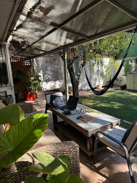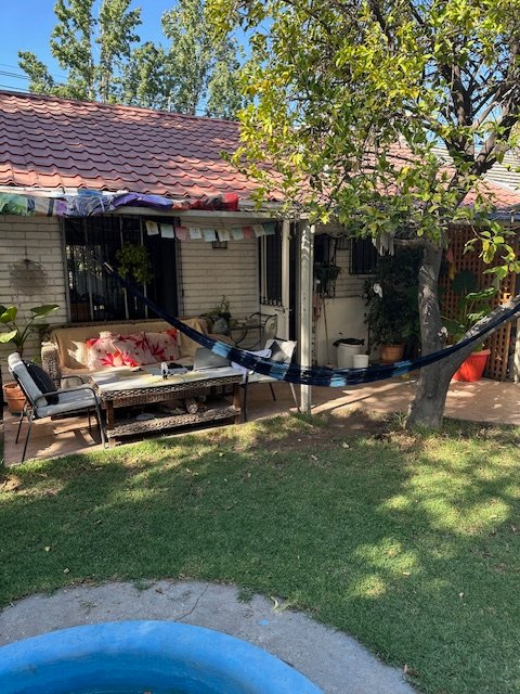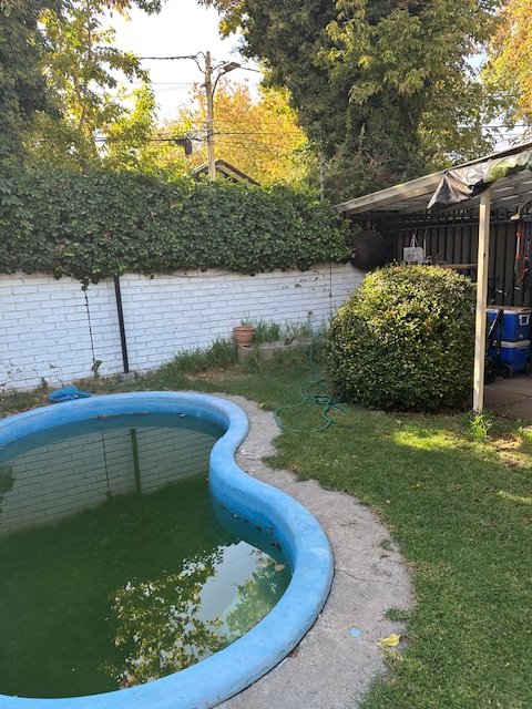 Venta casa original de 1 piso, sector residencial muy tranquilo y acogedor. Amplio terreno, cuenta con 2 dormitorios, 1 baño, living comedor, cocina , adicionalmente construcción en madera de 1 dormitorio y baño. En patio trasero cuenta con una piscina tipo riñon, espacio para instalar lavadora - secadora, cuenta con espacio para estacionar 2 vehículos techado, con ante jardín amplio. Casa esquina, sector protegido con seguridad comunal, cercano a mall Portal La Reina, Parque intercomunal La Reina, centro deportivo, ferias en bandejón central Fco. Bilbao, buena locomoción a 10 minutos al metro Francisco Bilbao.
