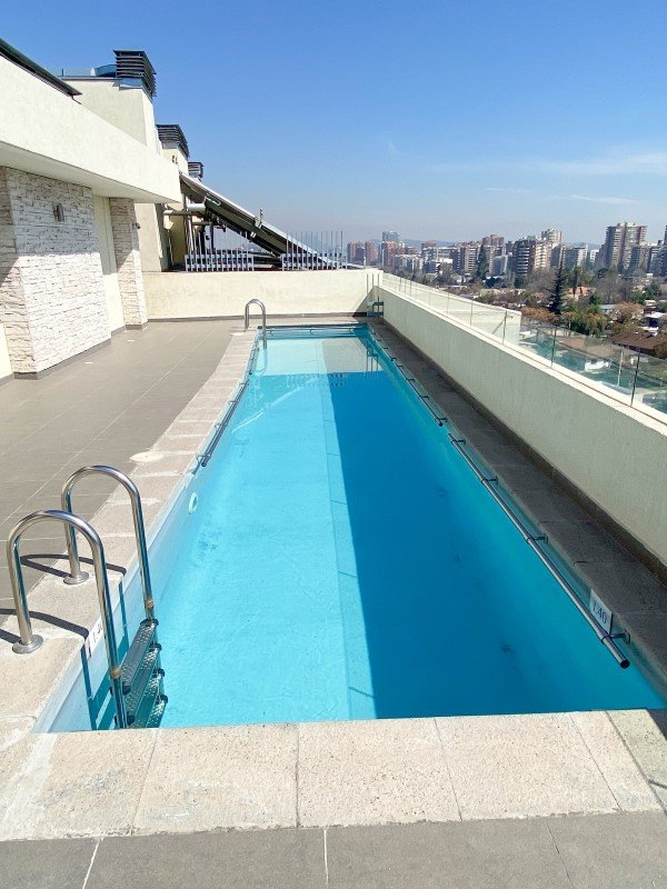 El edificio es moderno (2014) y elegante: Posee finas terminaciones, azotea con piscina, quinchos y una vista ESPECTACULAR, gimnasio, conserjería, recepción, entre otros.