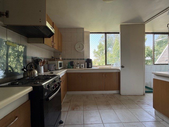 Primer piso. Hall de entrada, espaciosa bodega bajo escalera, living comedor, con salida a amplia terraza y hermosa vista a copas de frondosos árboles y cordillera. Gran cocina independiente, logia cerrada con espacio para lavadora y secadora, pieza y baño de servicio. Baño de visitas,