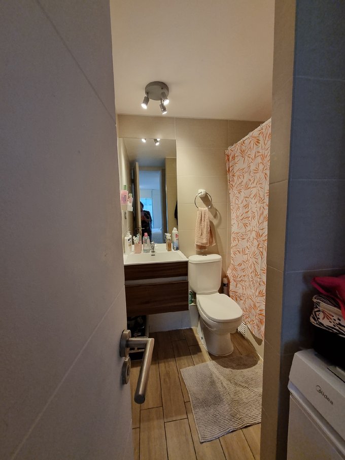 Otro punto a destacar es la instalación para lavadora y secadora, lo que facilita la gestión de la ropa en casa sin necesidad de depender de servicios externos. El departamento incluye un estacionamiento privado y una bodega amplia, brindando espacio adicional para guardar todo lo que necesites de manera ordenada y segura.