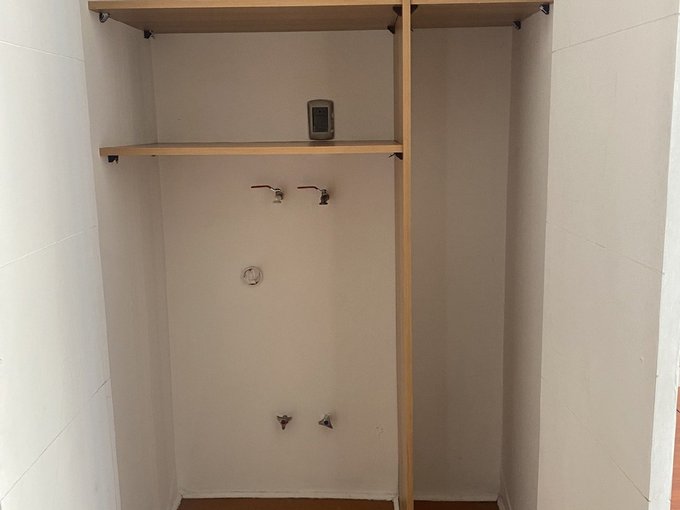 Conexión para lavadora en closet de pasillo.
