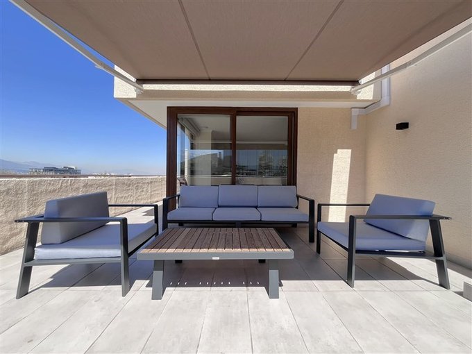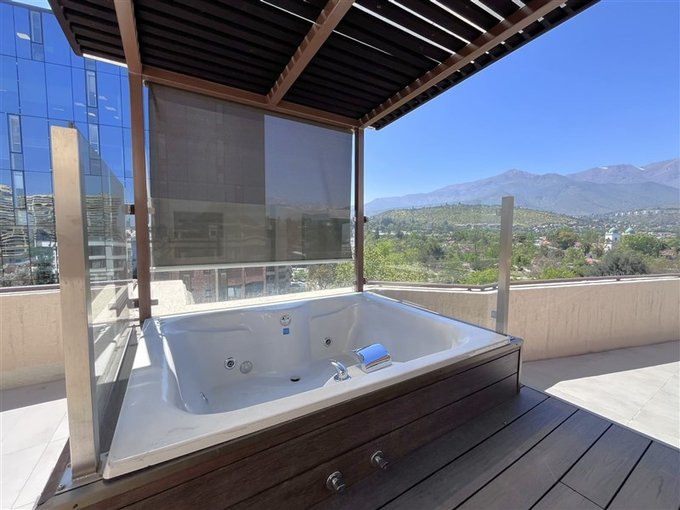 El departamento posee una orientación Nor-Oriente y cuenta con una gran terraza de 130 m2 con tina de hidromasaje, quincho en obra y una espectacular vista al Cerro Manquehue, Cordillera de Los Andes y Plaza Los Domínicos. Donde podrás disfrutar del amanecer, de hermosos atardeceres y compartir con amigos y familia.