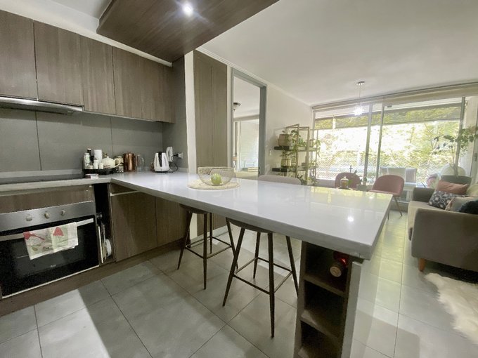 Disfruta de un living con cocina americana integrada, cubiertas de cuarzo, encimera vitrocerámica y espacio para lavadora. Además, cuenta con una acogedora terraza y calefacción por losa radiante, porcelanato y ventanales termopanel. Incluye estacionamiento y bodega!