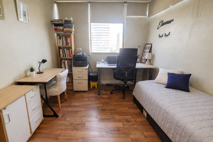 Amplio Dormitorio y baño de servicio o tercer dormitorio (ideal también como escritorio), tiene entrada independiente desde el hall de entrada.
