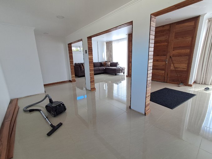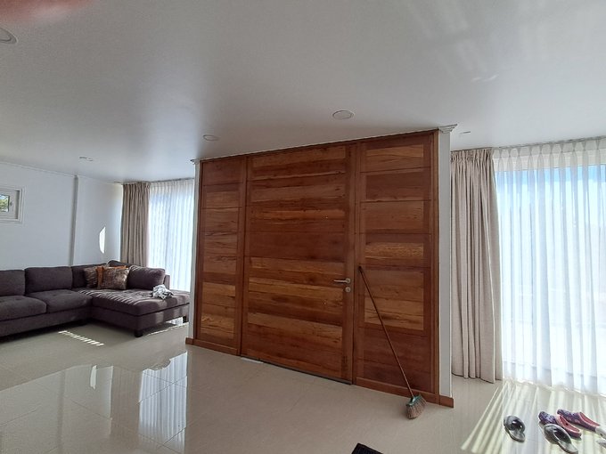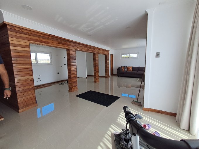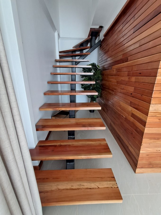 Una construcción de dos plantas que destaca por sus finas terminaciones en maderas nobles y espacios inundados de luz natural.