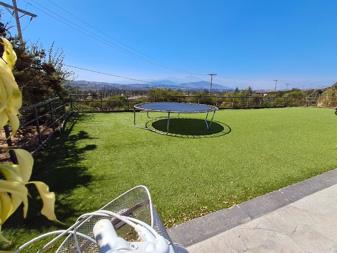 Área de Juegos: Zona con pasto sintético y barandas de seguridad, ideal para niños.