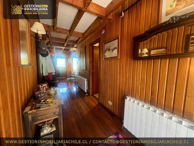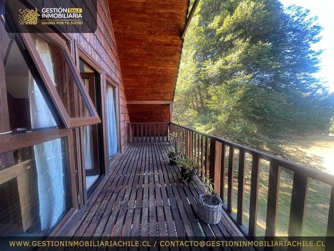 Idílica y hermosa casa en parcela, grandes espacios, estructura de maderas nobles pellín, mañío, ulmo, alerce, pino oregón. Exterior de alerce. Cuenta con pequeño bosque y frutales, jardín con arbustos nativos y flores.